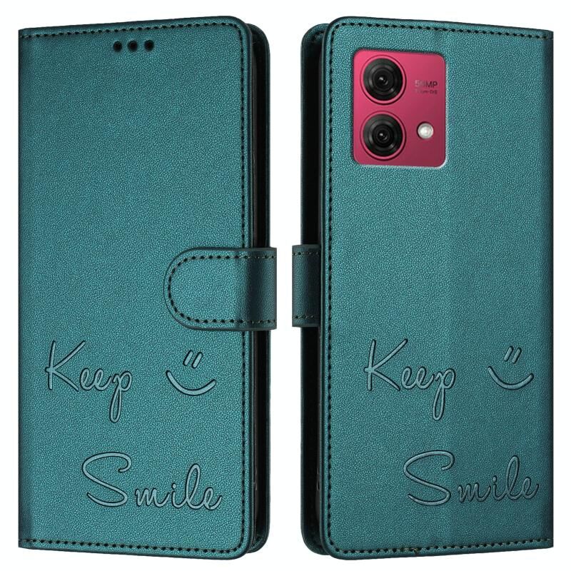 Θήκη τηλεφώνου δερμάτινη με ανάγλυφο χαμόγελο και RFID για Motorola Moto G84 5G (Μέντας Πράσινο)