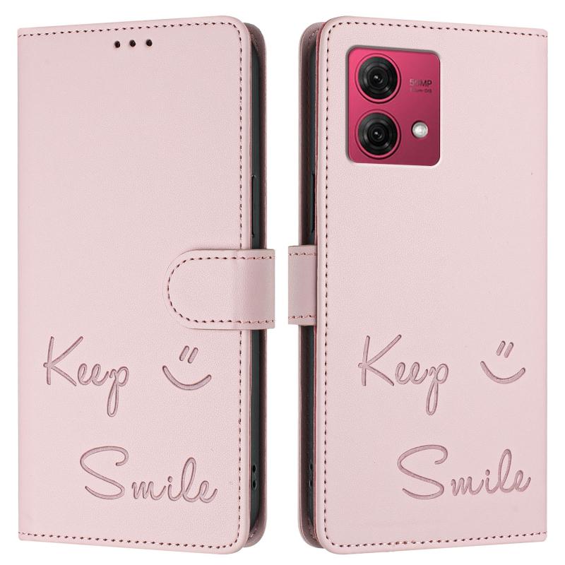 For Motorola Moto G84 5G Smile Embossing RFID Leather Phone Case(Pink)