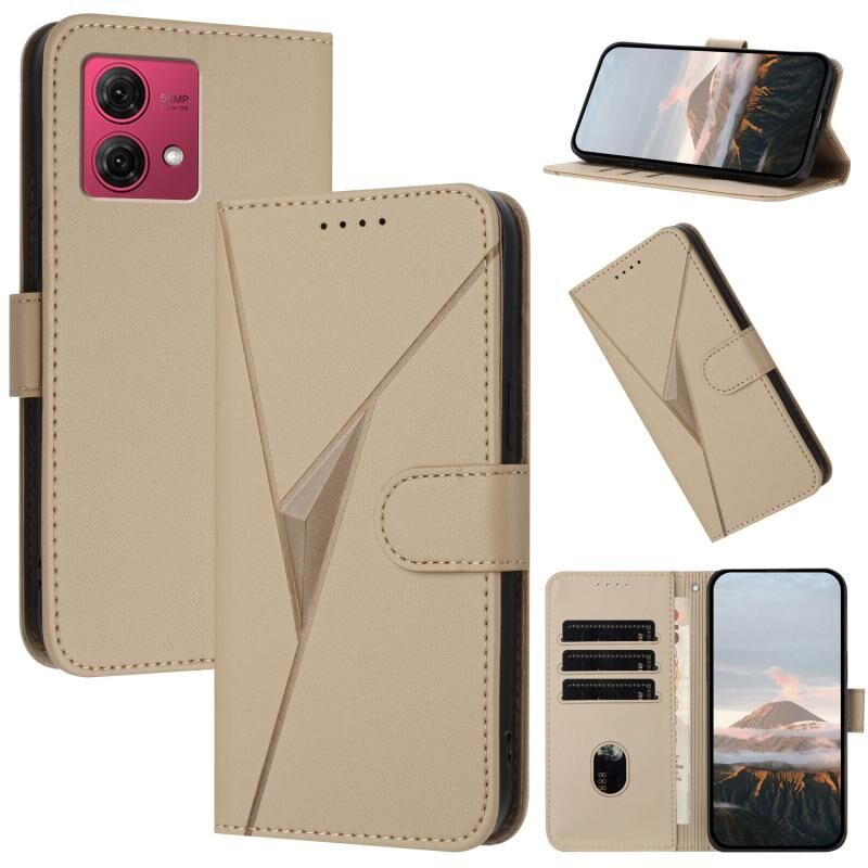 Θήκη τηλεφώνου από δέρμα με κούμπωμα τριγωνικού μοτίβου για Motorola Moto G84 5G (Σκούρο Μωβ)