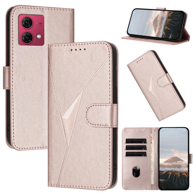 Θήκη τηλεφώνου από δέρμα με κούμπωμα τριγωνικού μοτίβου για Motorola Moto G84 5G (Ροζ χρυσός)