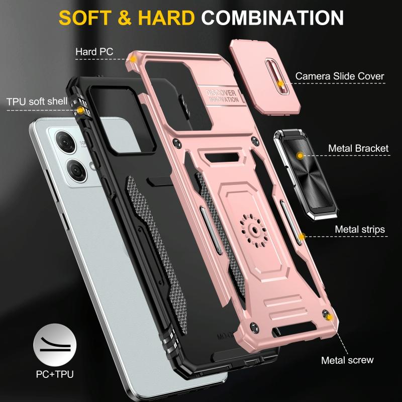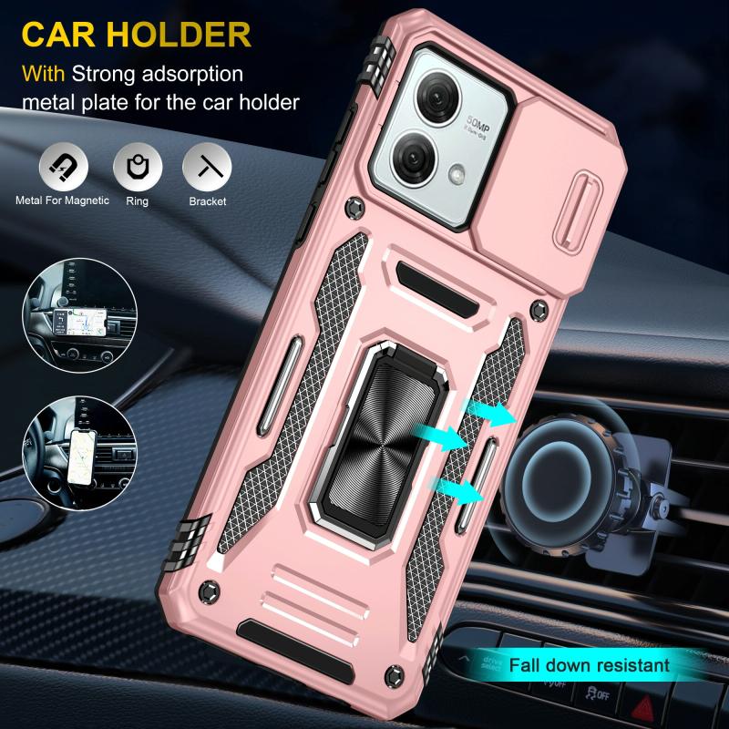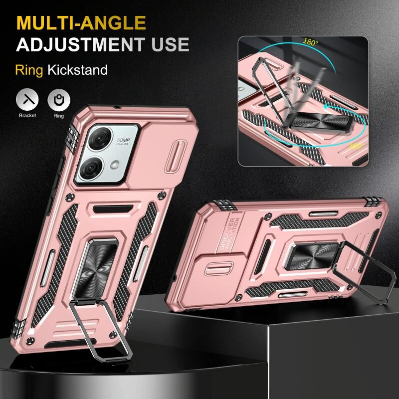 For Motorola Moto G84 Armor PC + TPU Camera Shield Phone Case(Rose Gold)