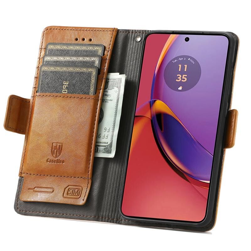 Για Motorola Moto G84 CaseNeo Splicing Διπλή μαγνητική πόρπη δερμάτινη θήκη τηλεφώνου (χακί)