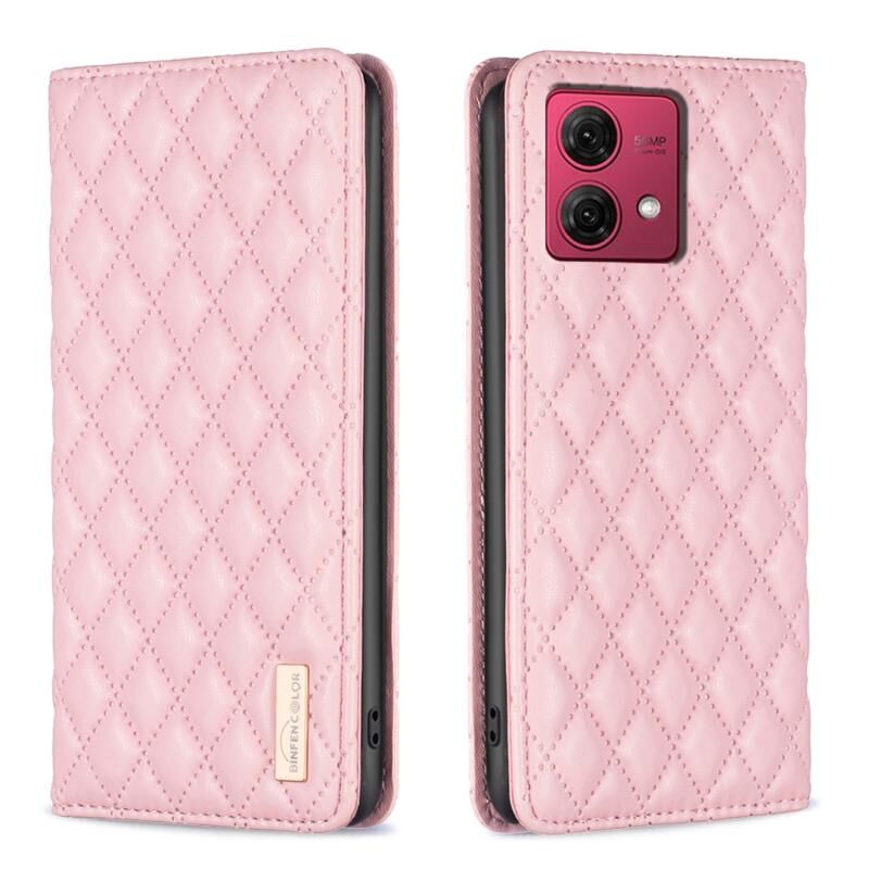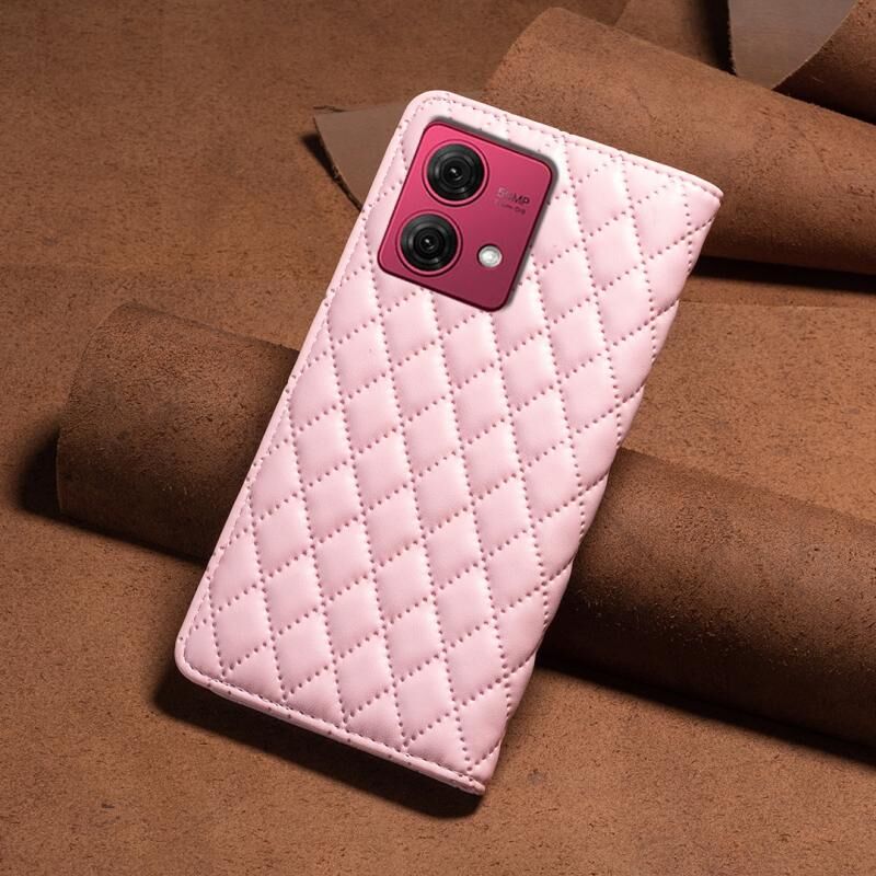 Για Motorola Moto G84 Diamond Lattice Μαγνητική δερμάτινη θήκη Flip Phone Case (ροζ)