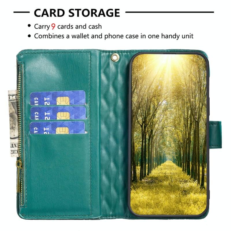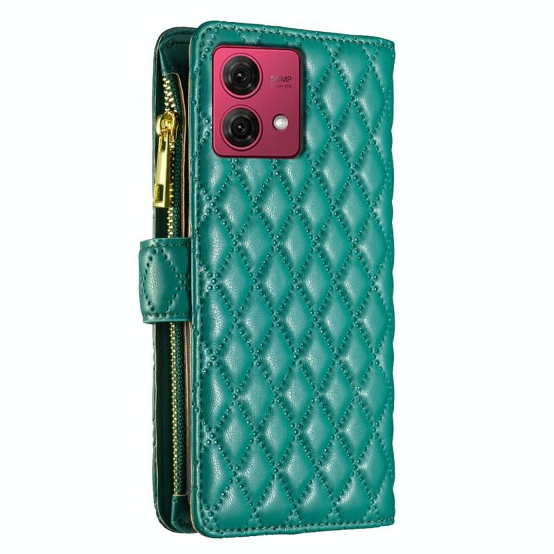 Για Motorola Moto G84 Diamond Lattice φερμουάρ πορτοφόλι δέρμα Flip υπόθεση τηλεφώνου (πράσινο)