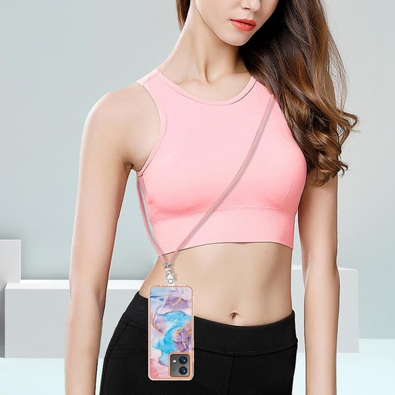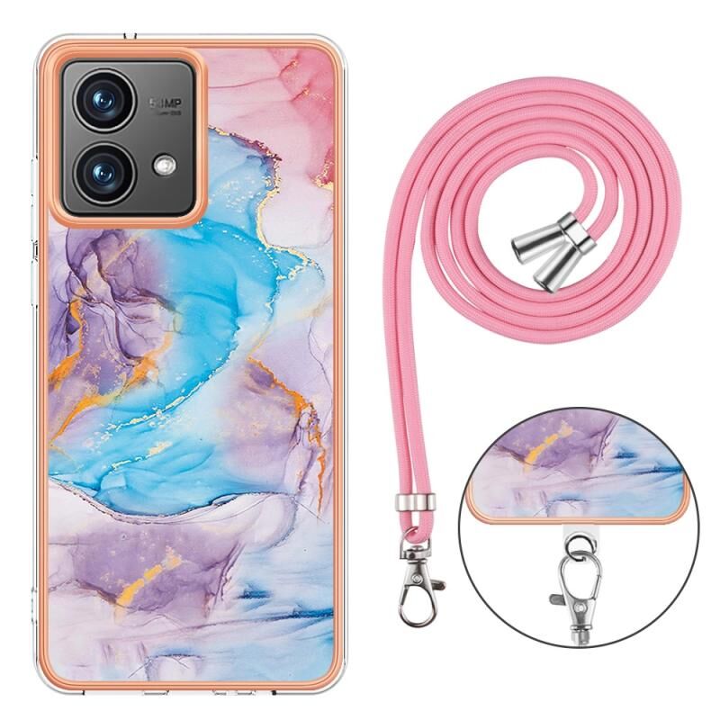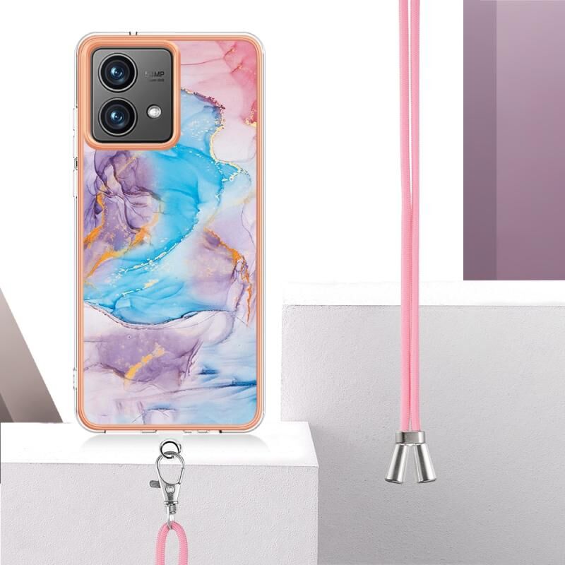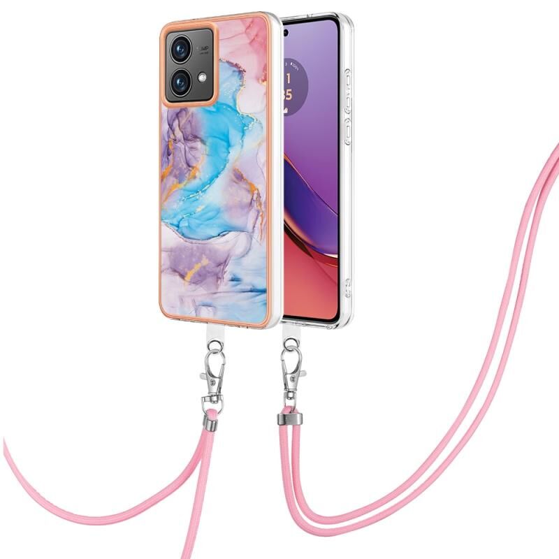 Θήκη κινητού τηλεφώνου για Motorola Moto G84 με ηλεκτρολυτική επιμετάλλωση IMD TPU με κορδόνι (Ροζ Λέπια)