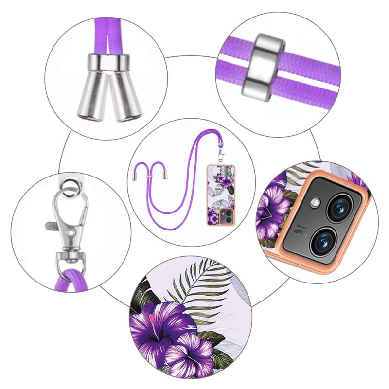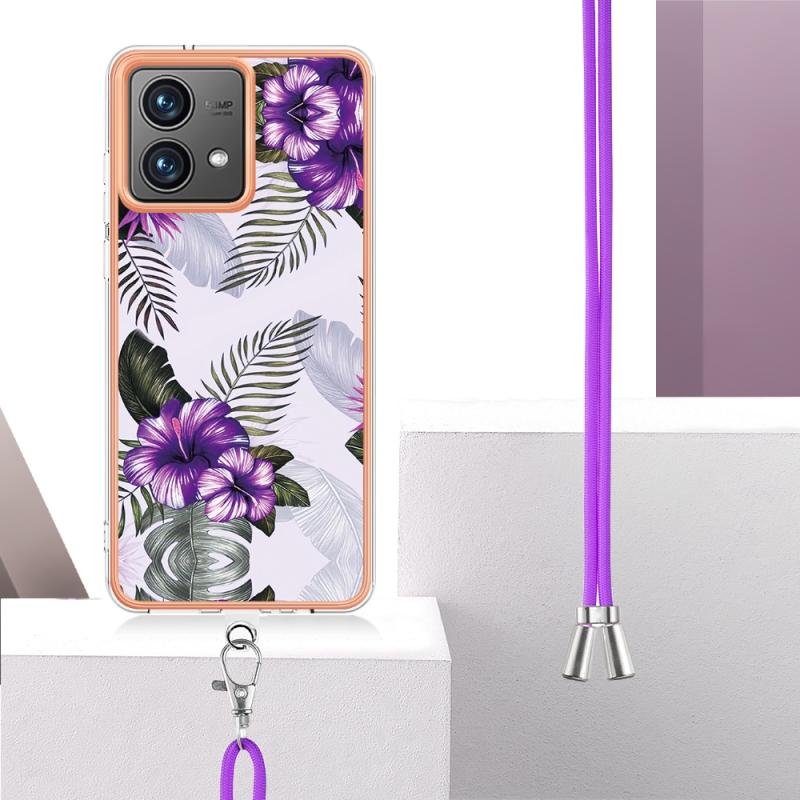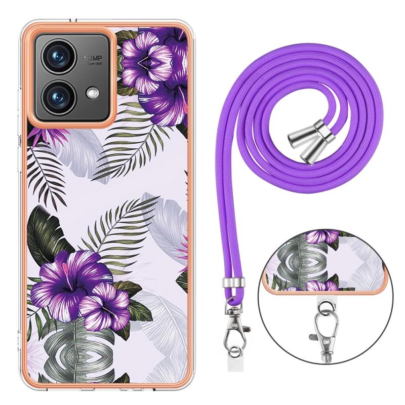 For Motorola Moto G84 Electroplating IMD TPU Phone Case with Lanyard(Purple Flower)