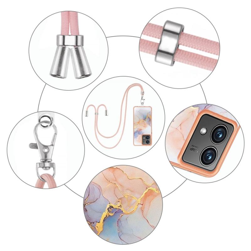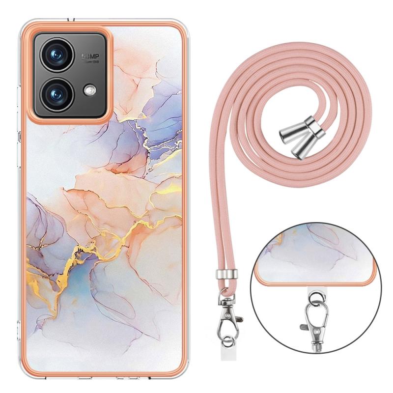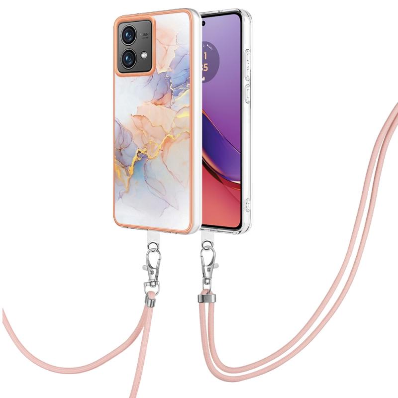 For Motorola Moto G84 Electroplating IMD TPU Phone Case with Lanyard(White Marble)