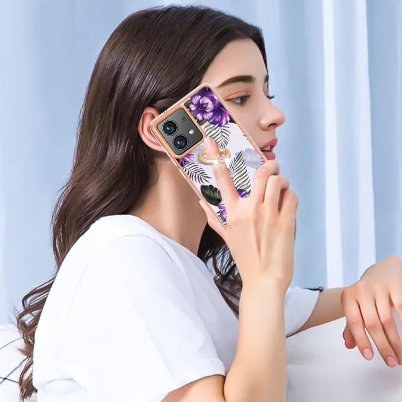 Θήκη κινητού τηλεφώνου για Motorola Moto G84 με ηλεκτρολυτική επιμετάλλωση IMD TPU με δακτύλιο (Ροζ Λέπια)