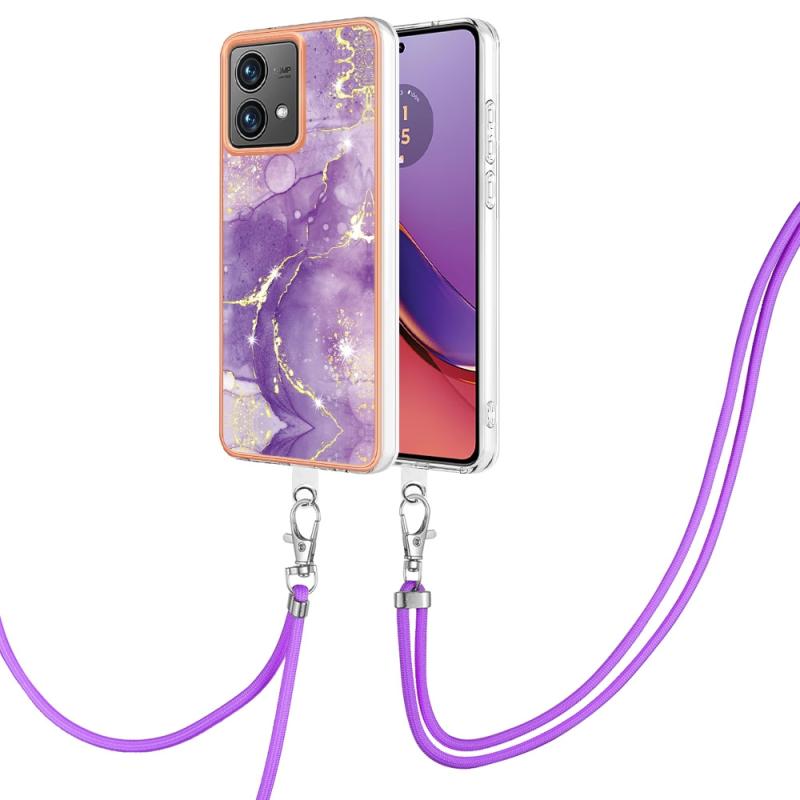 For Motorola Moto G84 Electroplating Marble Dual-side IMD Phone Case with Lanyard(Purple 002)