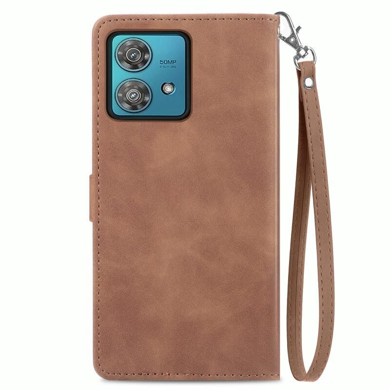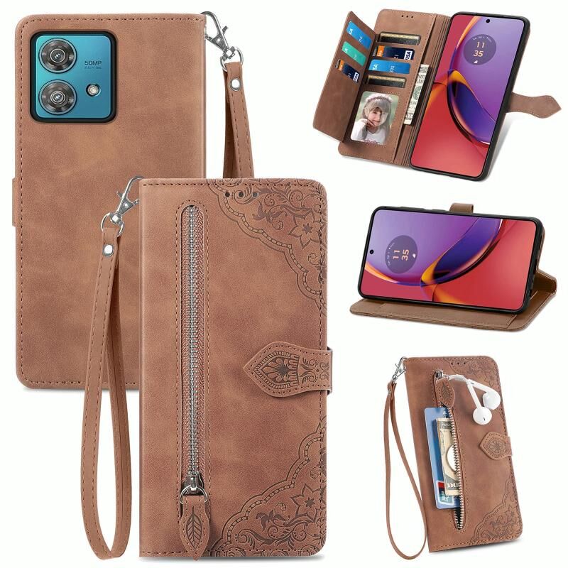 Για Motorola Moto G84 ανάγλυφο λουλούδι φερμουάρ δερμάτινη θήκη τηλεφώνου (Καφέ)