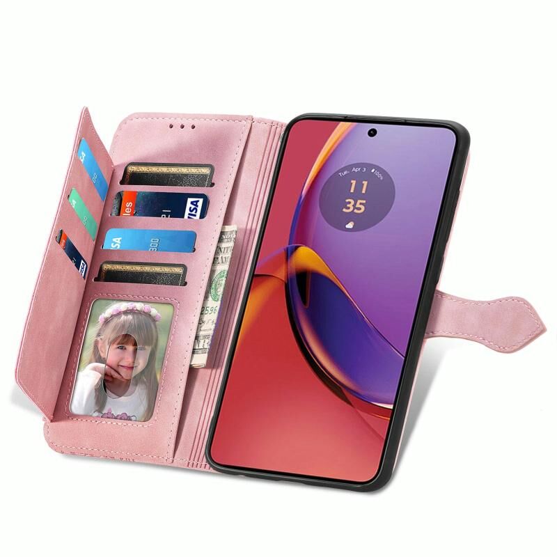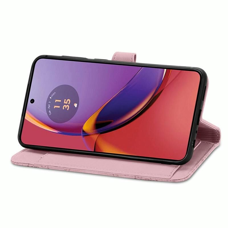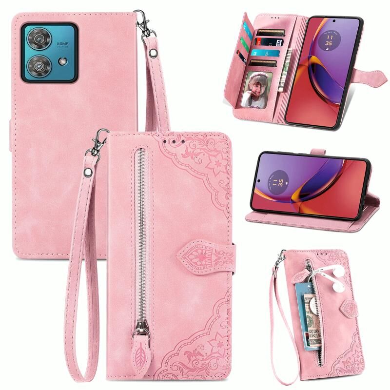 Για Motorola Moto G84 ανάγλυφο λουλούδι φερμουάρ δερμάτινη θήκη τηλεφώνου (ρόζ)