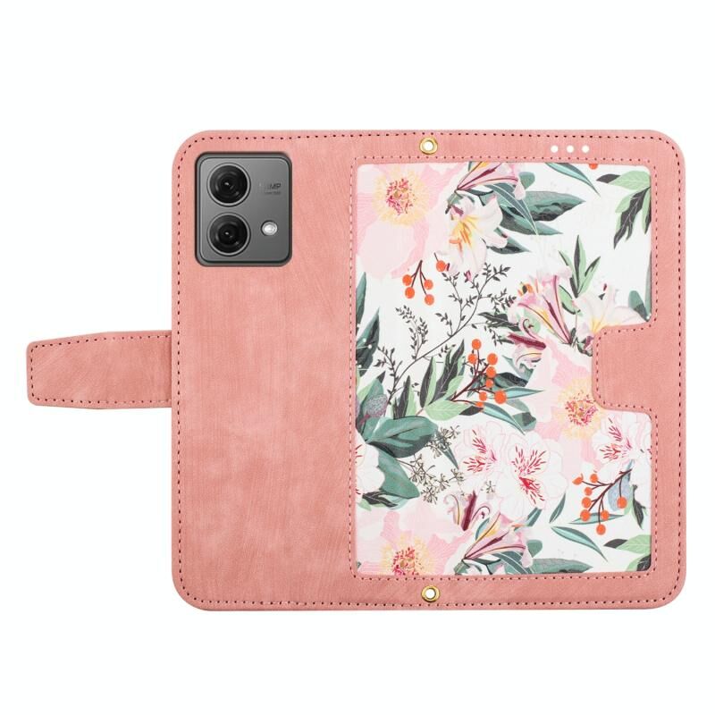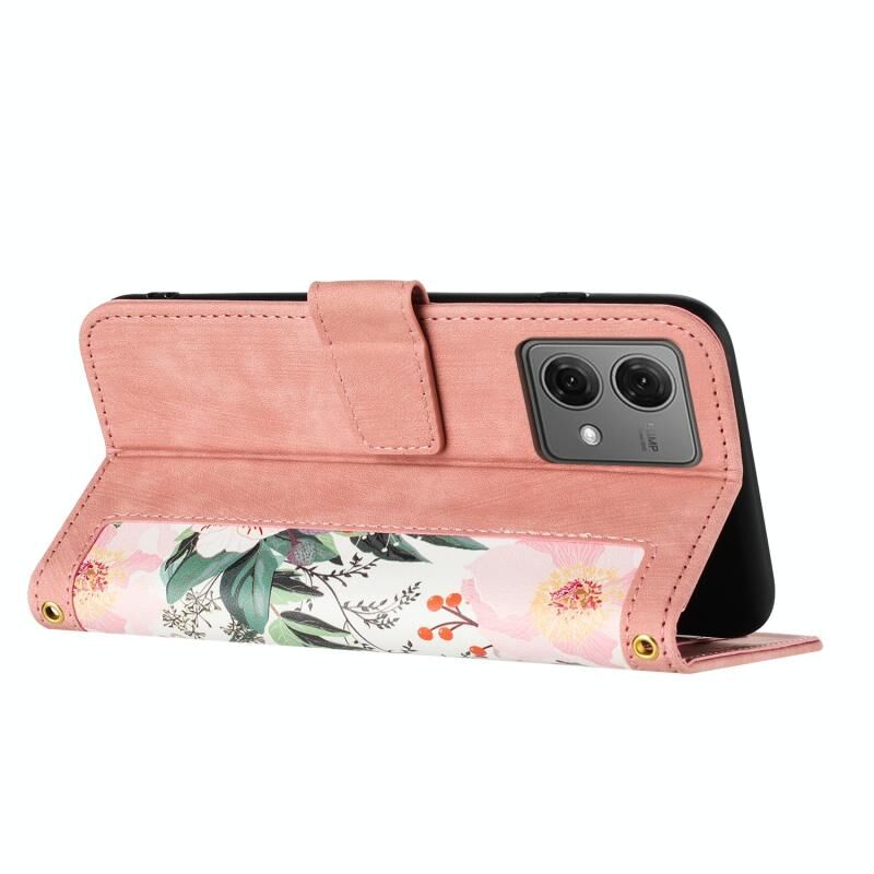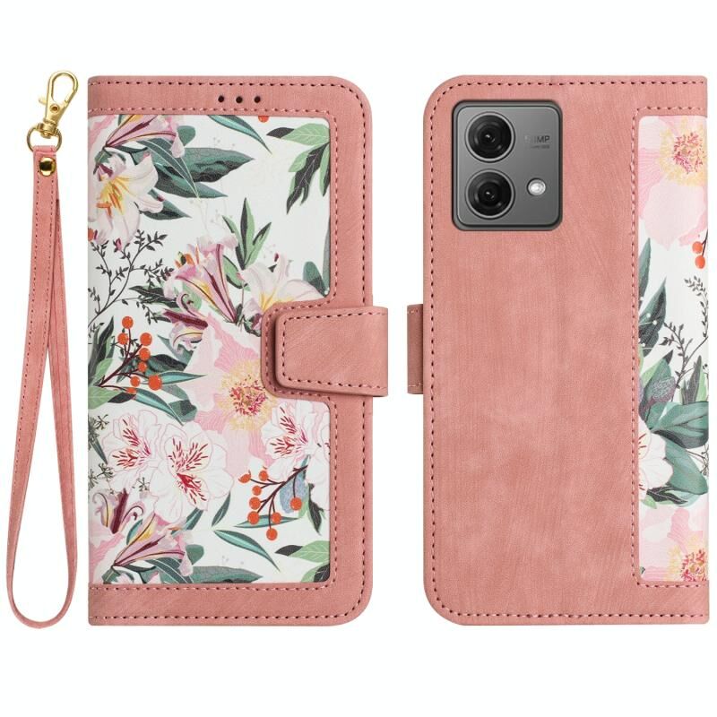 Θήκη τηλεφώνου δερμάτινη με λουλουδάτο σχέδιο για Motorola Moto G84 με κορδόνι (Ανοιχτό Μπλε)