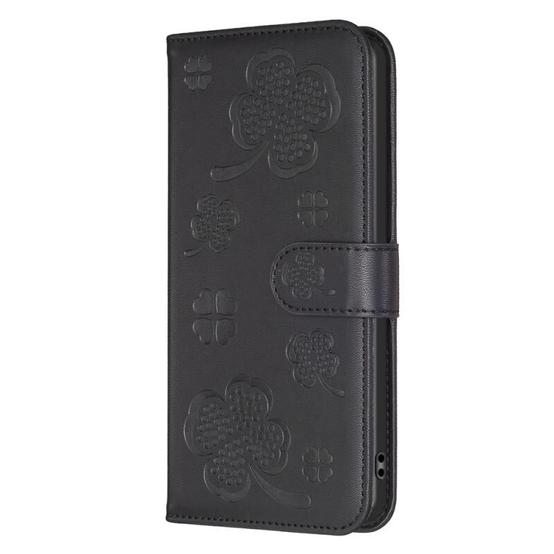 Για Motorola Moto G84 τετράφυλλο ανάγλυφη δερμάτινη θήκη τηλεφώνου (Μαύρο)