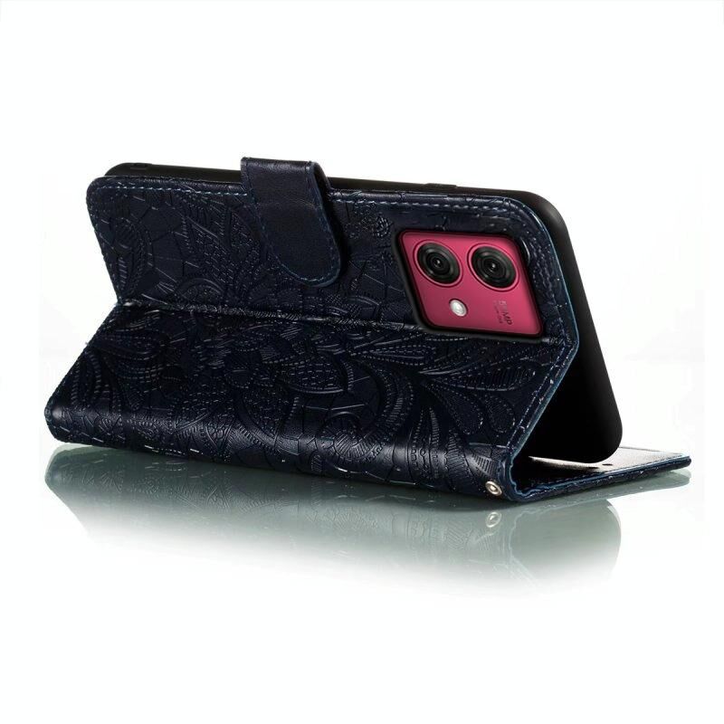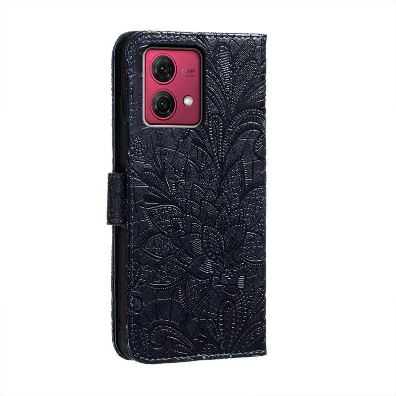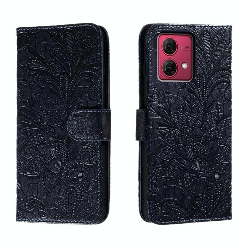 Για Motorola Moto G84 Δαντέλα λουλούδι ανάγλυφο Flip δερμάτινη θήκη τηλεφώνου (σκούρο μπλε)