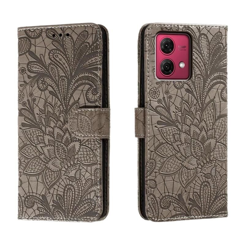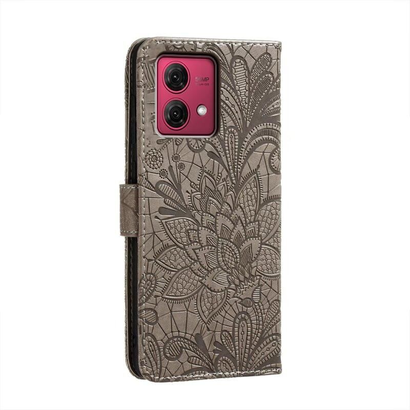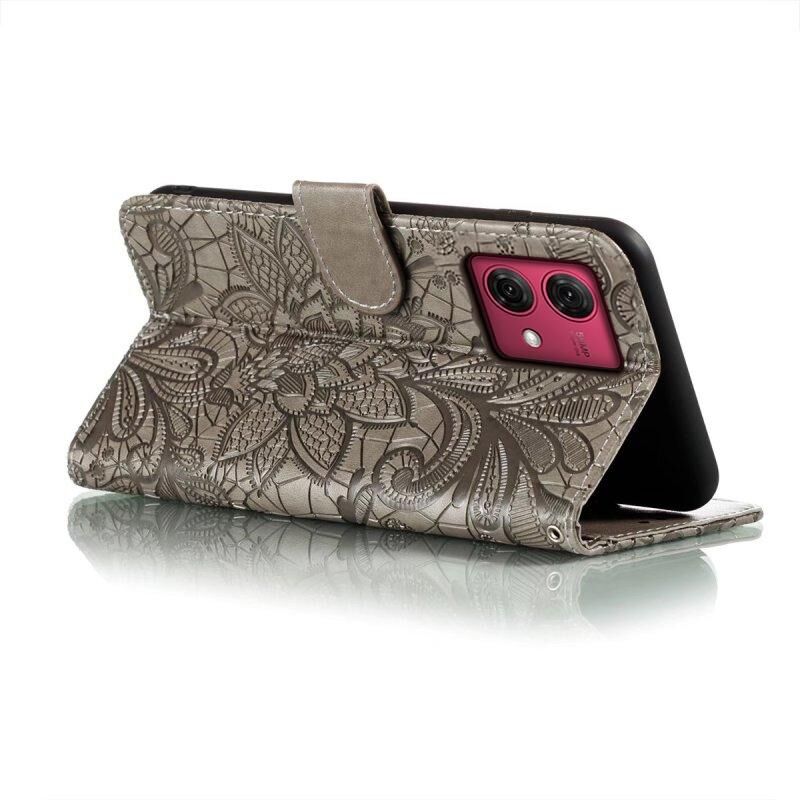 Για Motorola Moto G84 Δαντέλα λουλούδι ανάγλυφο Flip θήκη τηλεφώνου δέρμα (γκρι)