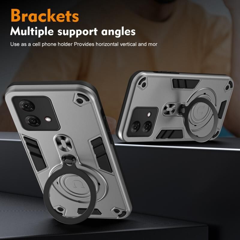 Για Motorola Moto G84 Μεταλλικό δαχτυλίδι 360 μοιρών περιστρεφόμενη θήκη τηλεφώνου PC Hybrid TPU (ασημί γκρι)