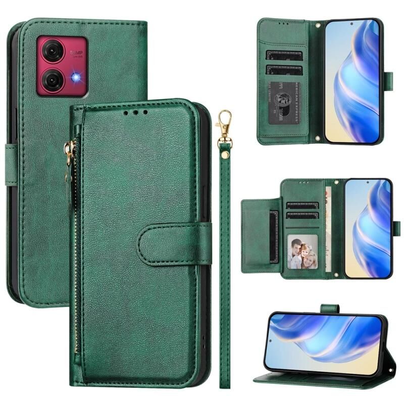 Θήκη τηλεφώνου δερμάτινη με φερμουάρ και πολλαπλές θήκες καρτών για Motorola Moto G84 (Μαύρο)