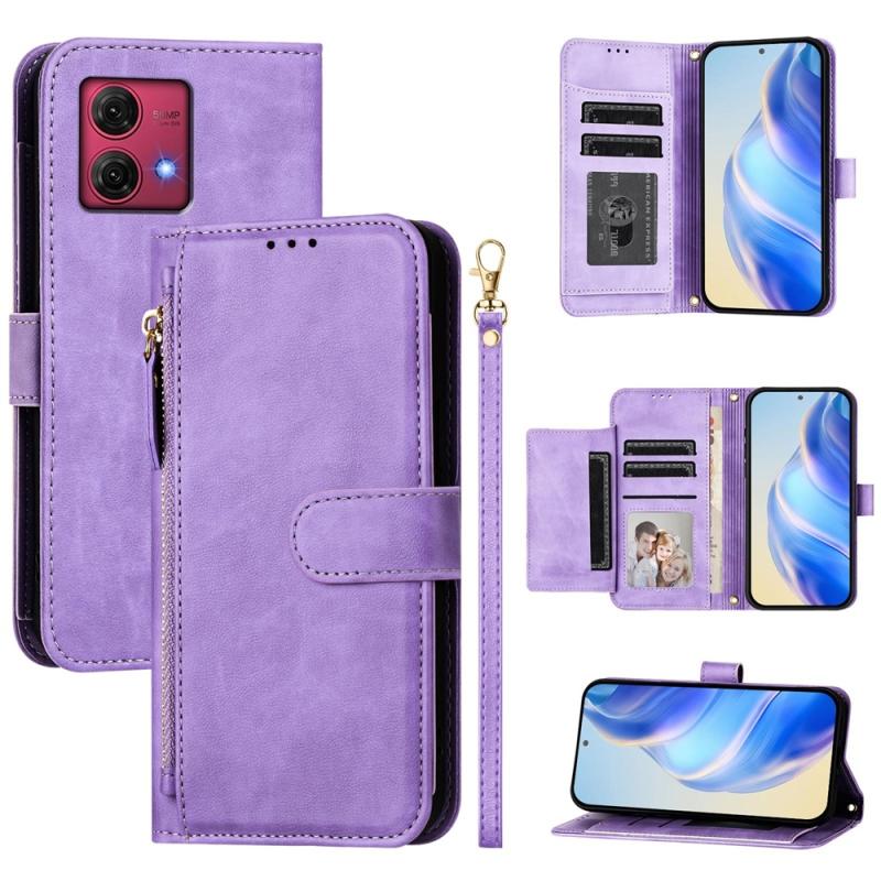 Θήκη τηλεφώνου δερμάτινη με φερμουάρ και πολλαπλές θήκες καρτών για Motorola Moto G84 (Μαύρο)