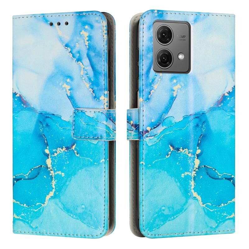 Θήκη τηλεφώνου δερμάτινη με σχέδιο μαρμάρου για Motorola Moto G84 (Μπλε Πράσινο)