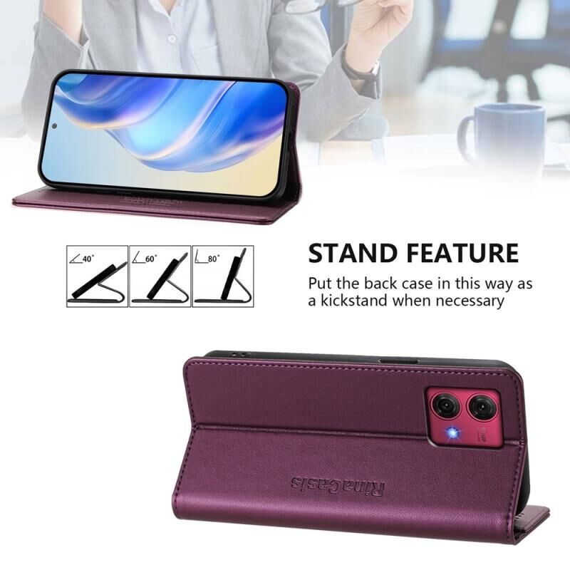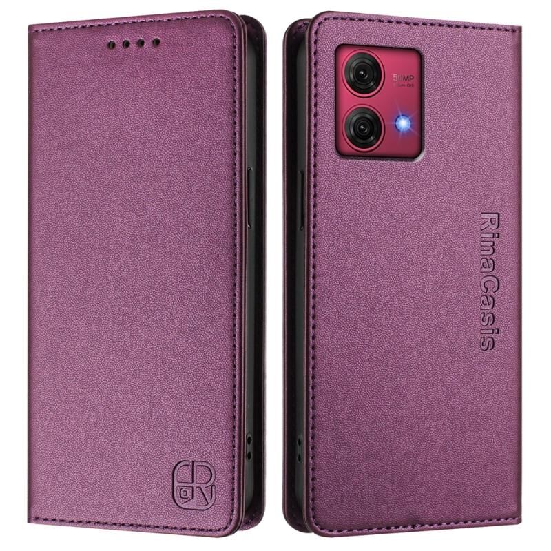 Θήκη τηλεφώνου δερμάτινη με μαγνητική απορρόφηση και διπλή πτυχή για Motorola Moto G84 RC01 (Βιολετί)