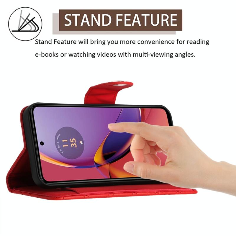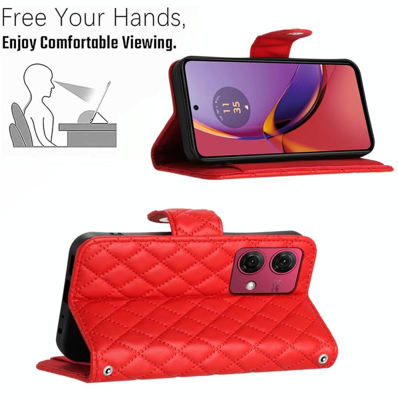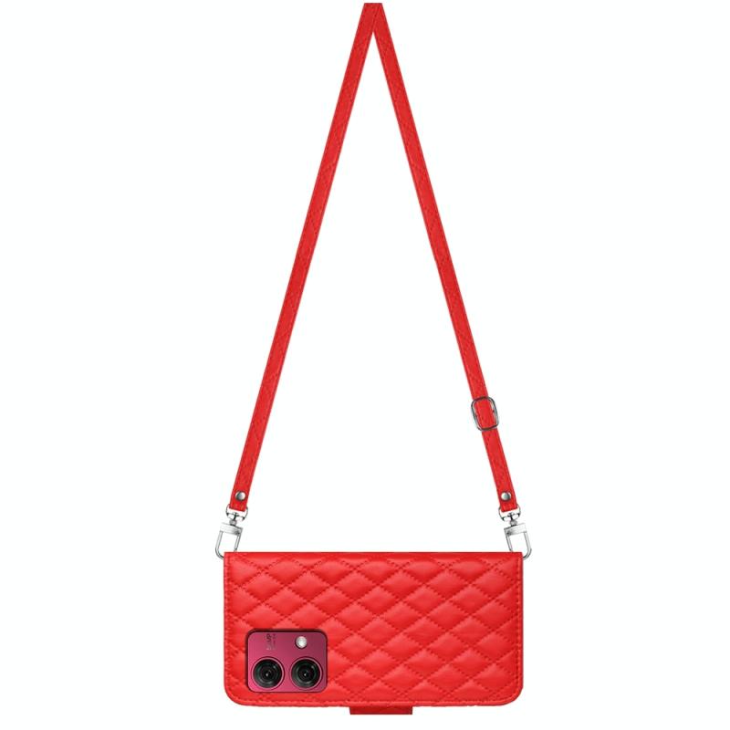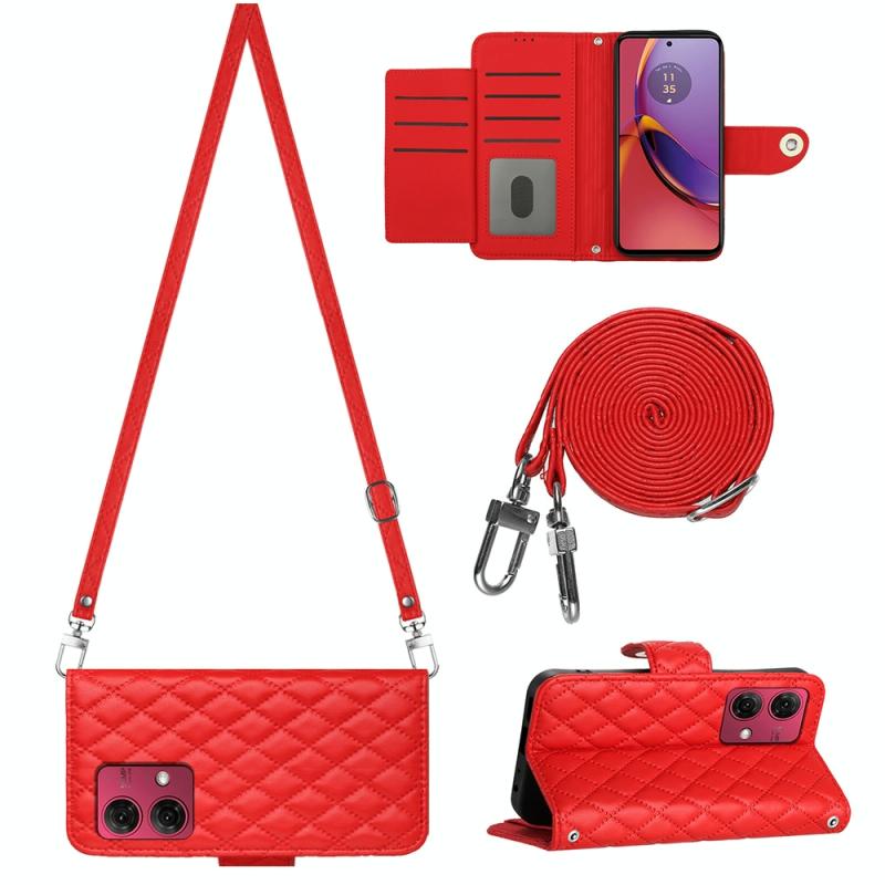 For Motorola Moto G84 Rhombic Texture Flip Leather Phone Case with Long Lanyard(Red)