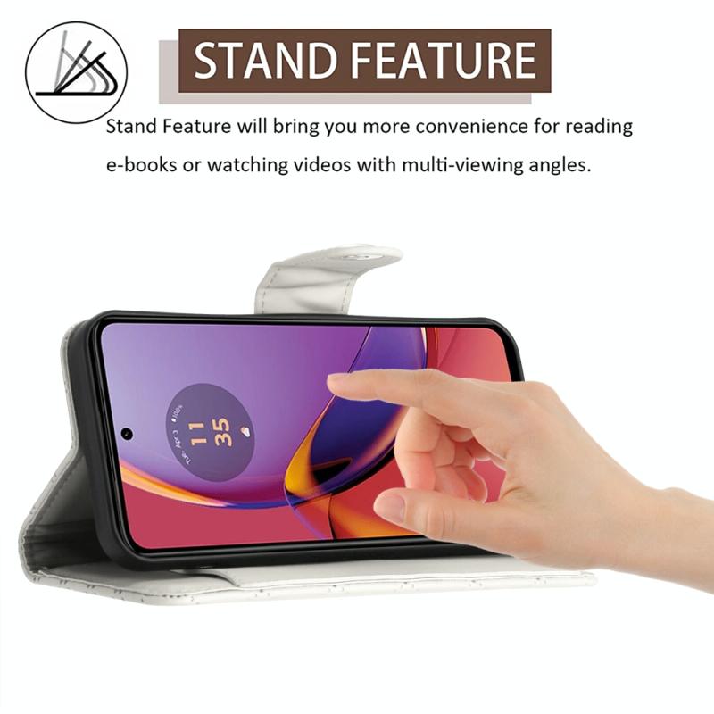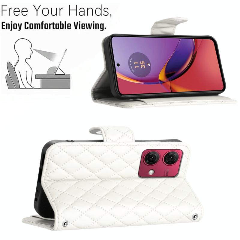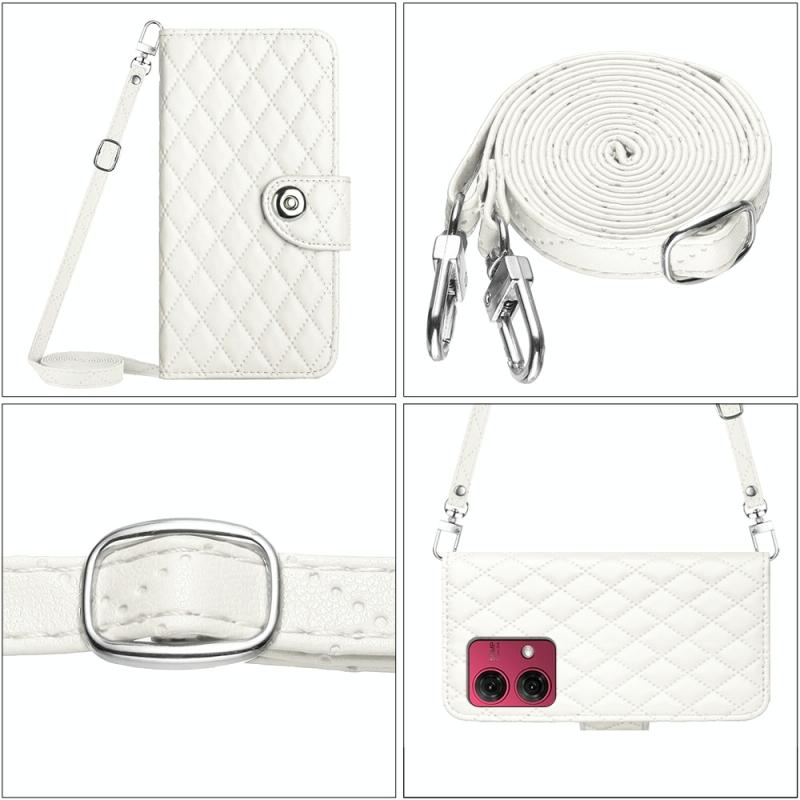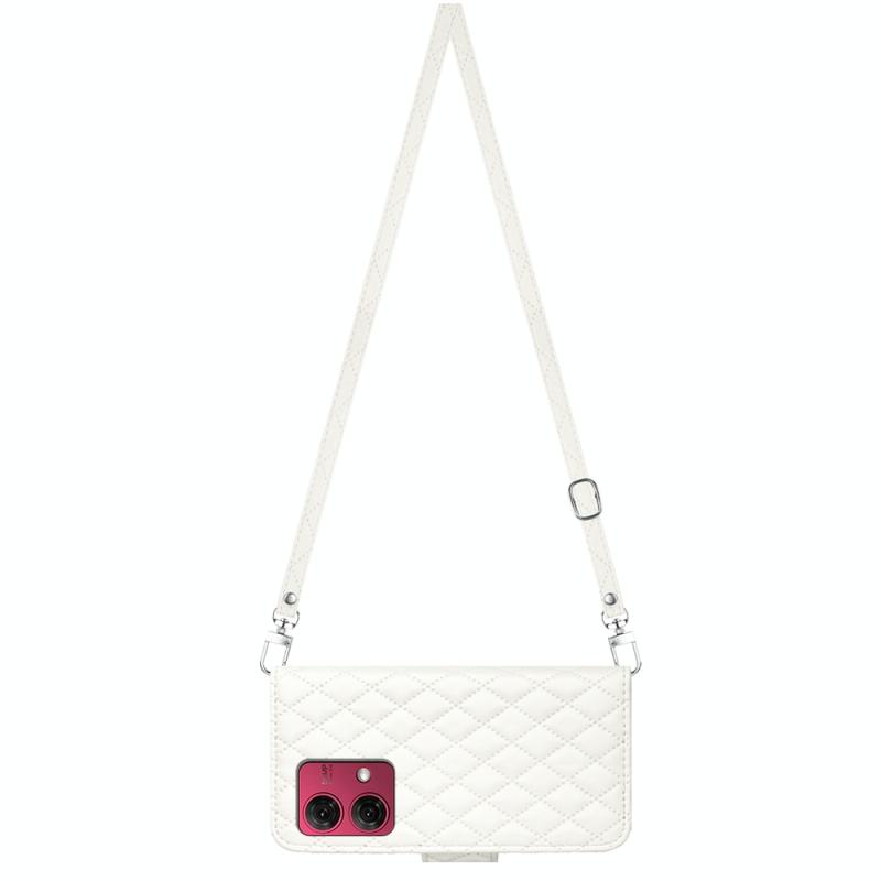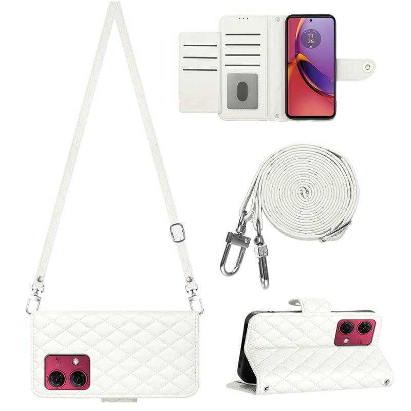 For Motorola Moto G84 Rhombic Texture Flip Leather Phone Case with Long Lanyard(White)