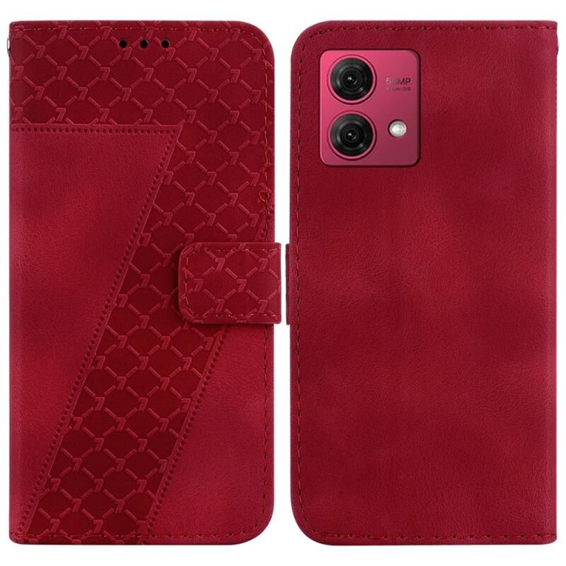 Θήκη τηλεφώνου από δέρμα με ανάγλυφο σχέδιο επτά σχήματος για Motorola Moto G84 (Κόκκινο)