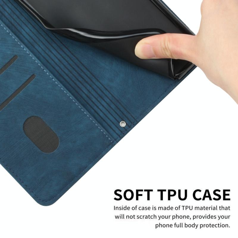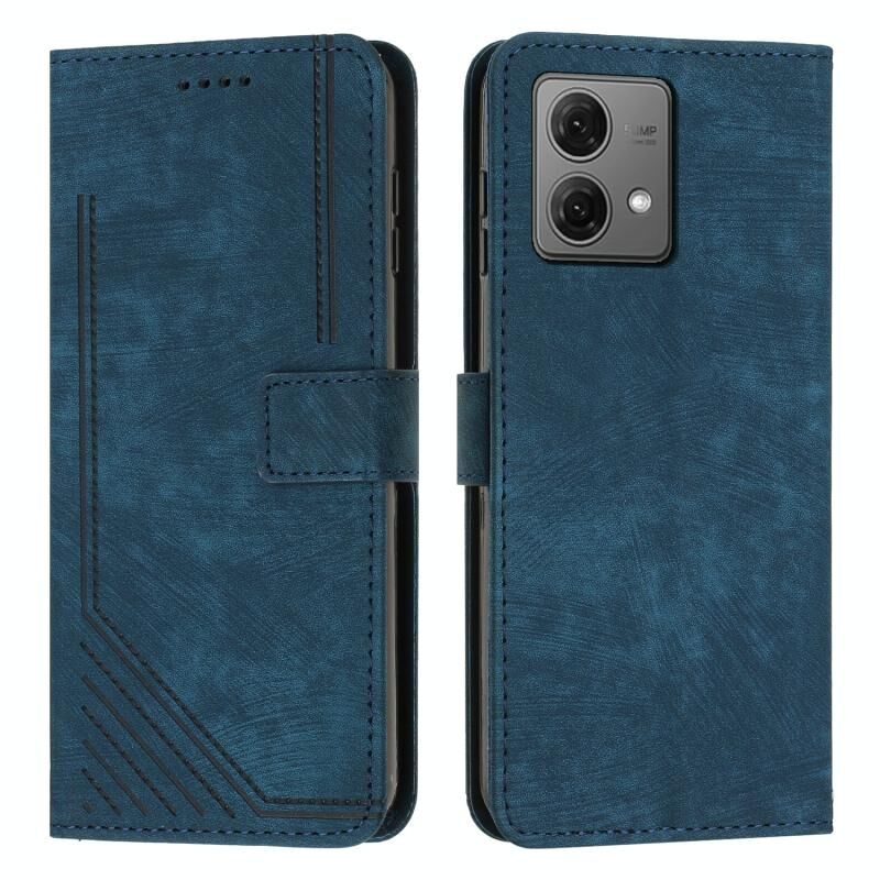 For Motorola Moto G84 Skin Feel Stripe Pattern Leather Phone Case with Lanyard(Blue)