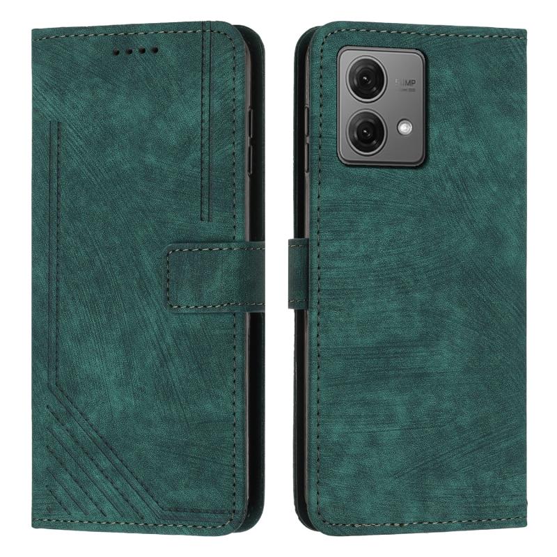 For Motorola Moto G84 Skin Feel Stripe Pattern Leather Phone Case with Lanyard(Green)