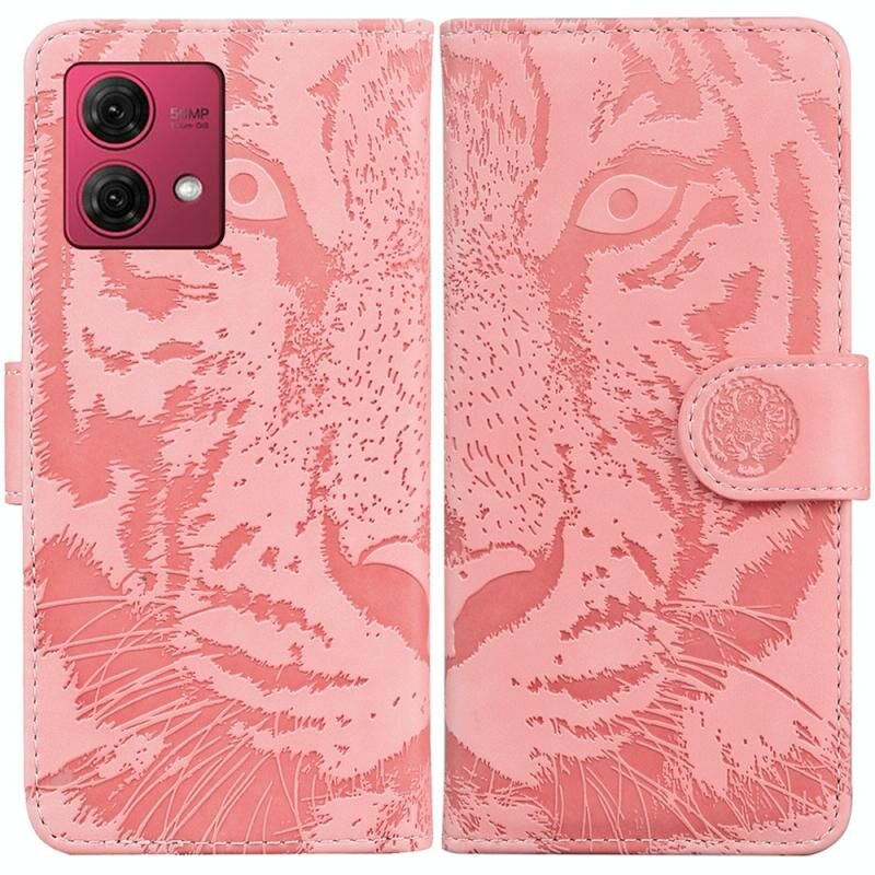 Θήκη τηλεφώνου δερμάτινη με ανάγλυφο μοτίβο τίγρης για Motorola Moto G84 (Μαύρο)