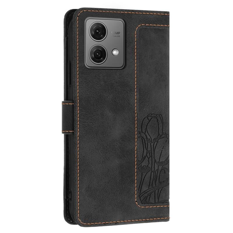 Θήκη κινητού τηλεφώνου από δέρμα με ανάγλυφα τουλίπες για Motorola Moto G84 με κορδόνι (Πράσινο)