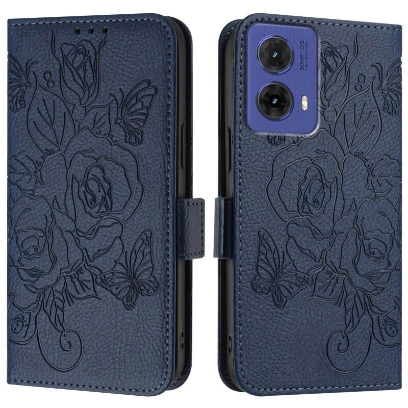 Για Motorola Moto G85 5G ανάγλυφο Rose RFID Anti-theft δερμάτινη θήκη τηλεφώνου (σκούρο μπλε)