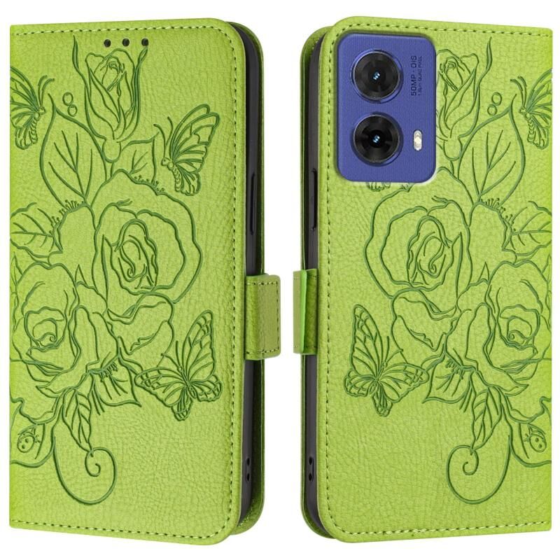 Για Motorola Moto G85 5G ανάγλυφο Rose RFID Anti-theft Δερμάτινη θήκη τηλεφώνου (Πράσινο)