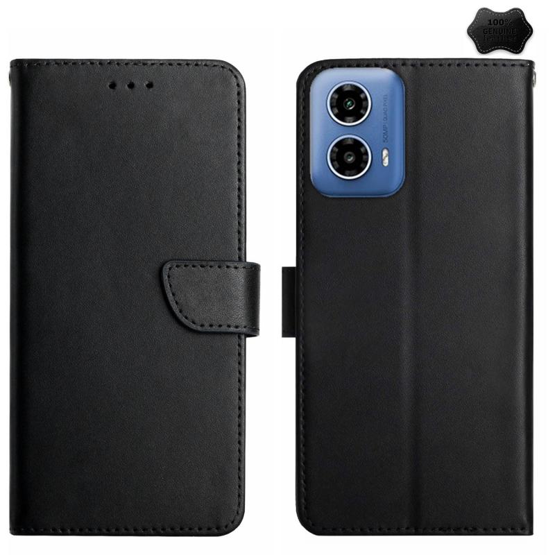 For Motorola Moto G85 5G Genuine Leather Fingerprint-proof Horizontal Flip Phone Case(Black)
