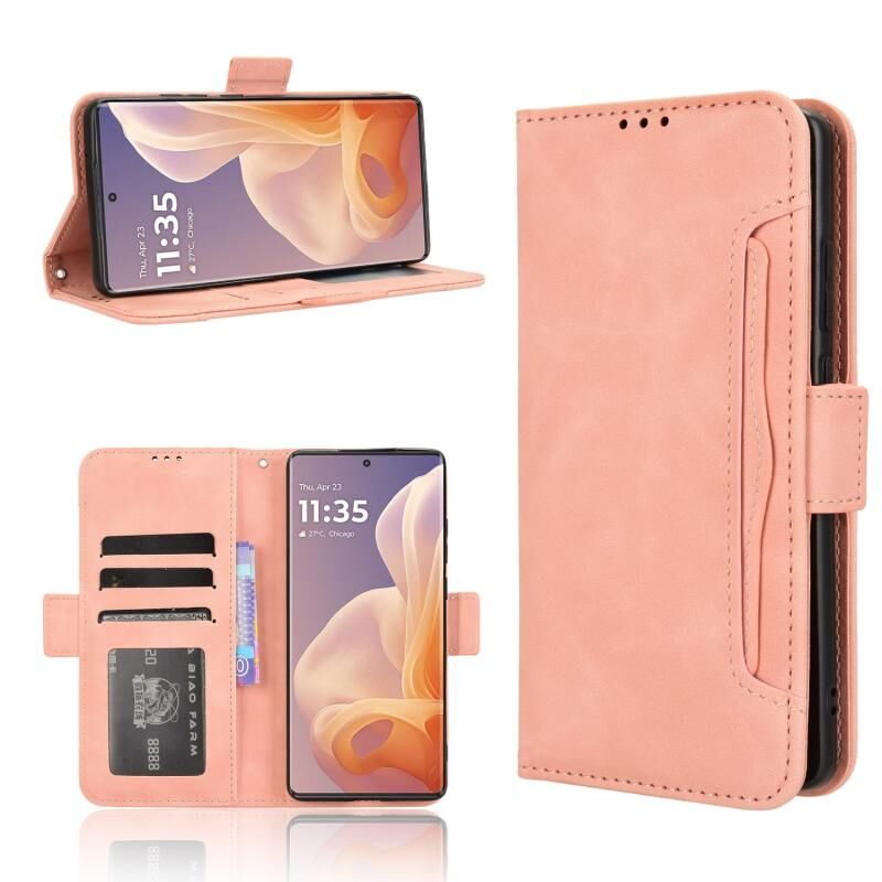 Θήκη τηλεφώνου από δέρμα με υφή μοσχαριού και θήκες καρτών για Motorola Moto G85 5G / S50 Neo 5G (ρόζ)