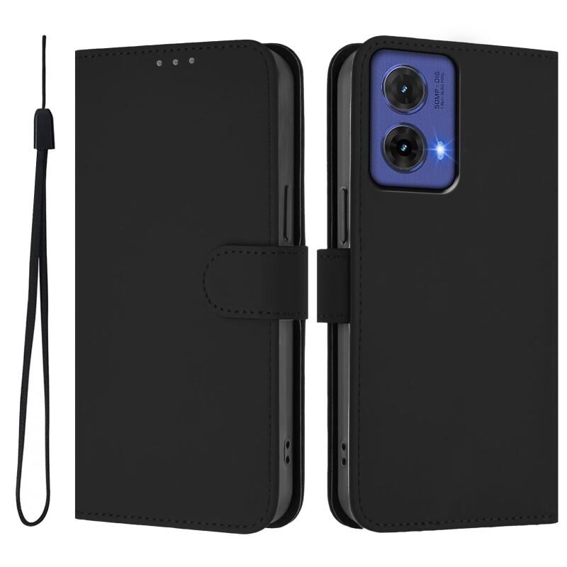 Για Motorola Moto G85 5G Skin Feel Solid Color Δερμάτινη θήκη τηλεφώνου με κορδόνι (Μαύρο)