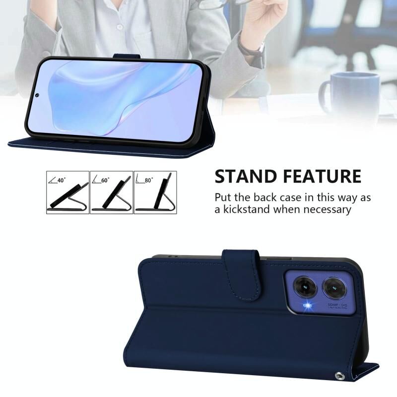 Για Motorola Moto G85 5G Skin Feel Solid Color Δερμάτινη θήκη τηλεφώνου με κορδόνι (Ναυτικό μπλε)