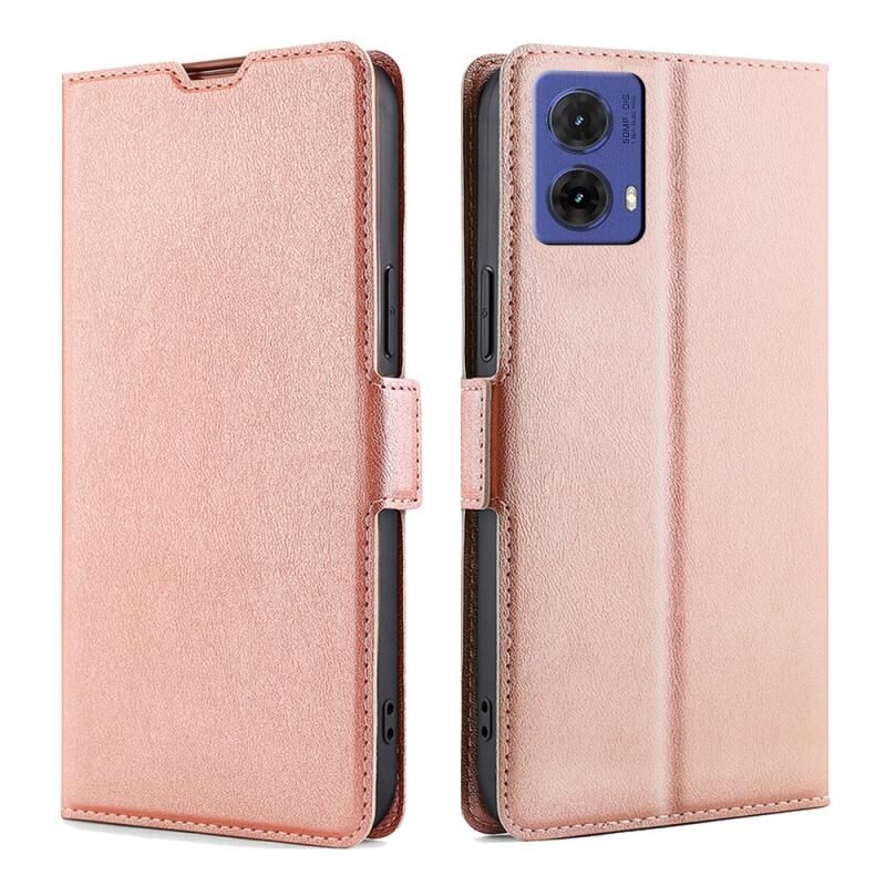 Θήκη τηλεφώνου δέρμα Flip οριζόντια με πλευρική αγκράφα τάσης, εξαιρετικά λεπτή για Motorola Moto G85 5G (Ροζ χρυσός)