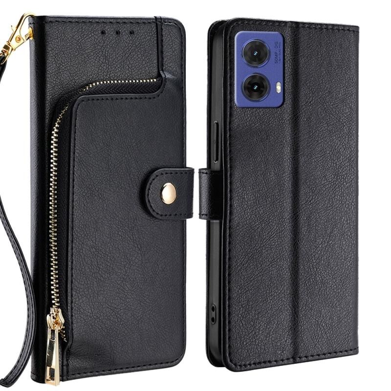 Για Motorola Moto G85 5G φερμουάρ τσάντα δερμάτινη θήκη τηλεφώνου (μαύρο)