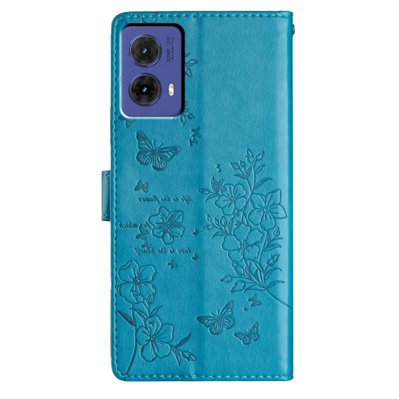Θήκη τηλεφώνου δερμάτινη για Motorola Moto G85 με σχέδια πεταλούδες και λουλούδια (Μπλε)