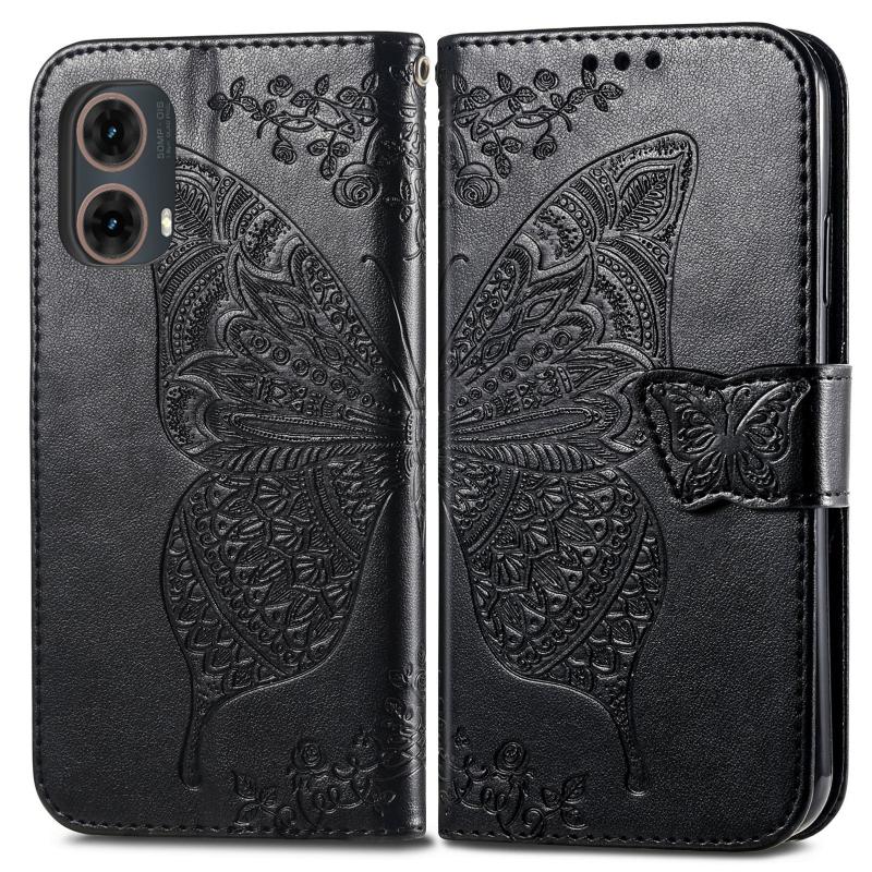 For Motorola Moto G85 Butterfly Love Flower Embossed Leather Phone Case(Black)
