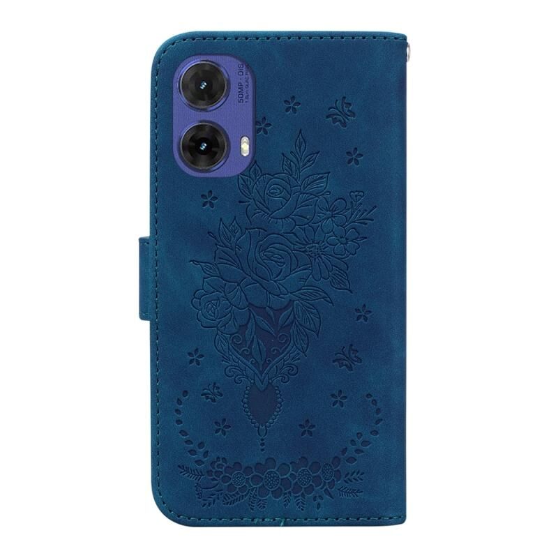 Για Motorola Moto G85 Πεταλούδα Rose ανάγλυφη δερμάτινη θήκη τηλεφώνου (Μπλε)