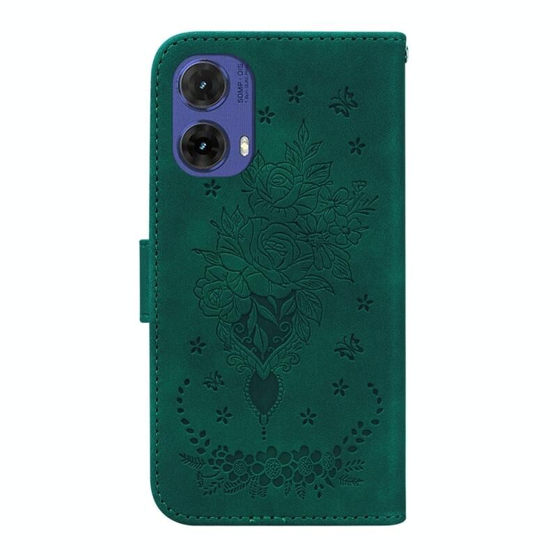 Για Motorola Moto G85 Πεταλούδα Rose ανάγλυφη δερμάτινη θήκη τηλεφώνου (πράσινο)