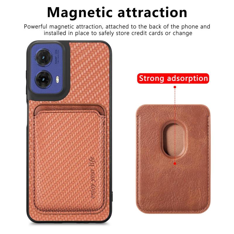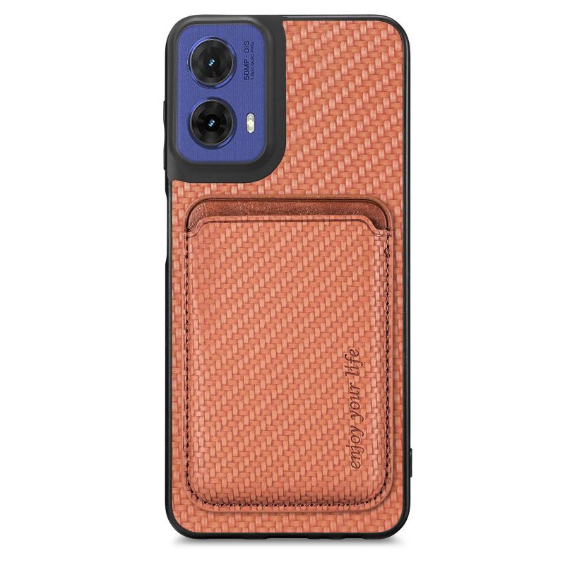 For Motorola Moto G85 Carbon Fiber Leather Card MagSafe Phone Case(Brown)