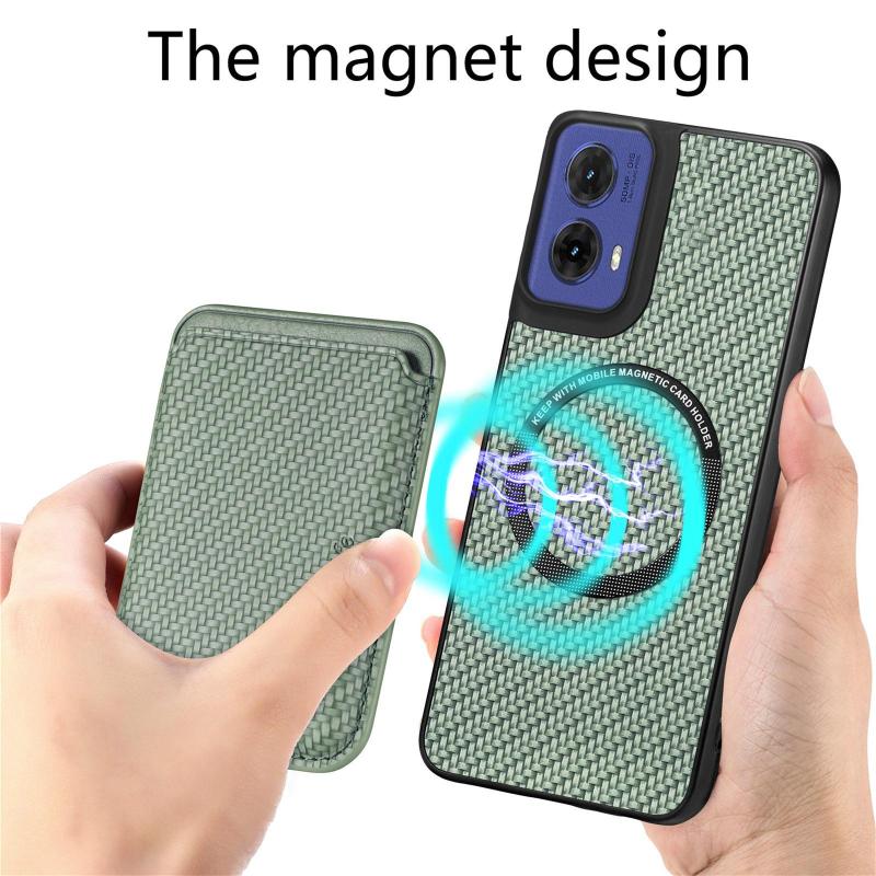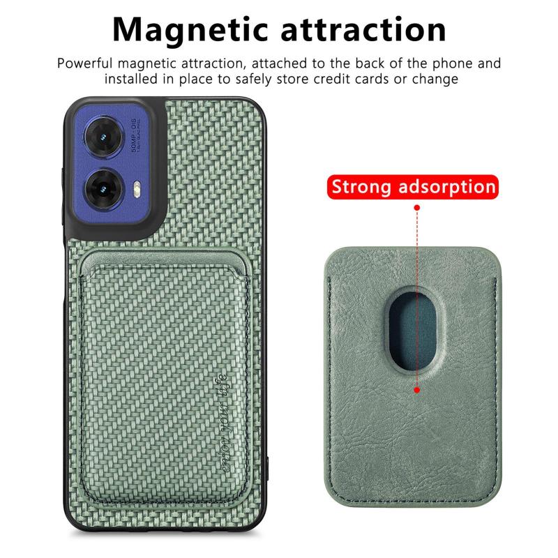 For Motorola Moto G85 Carbon Fiber Leather Card MagSafe Phone Case(Green)