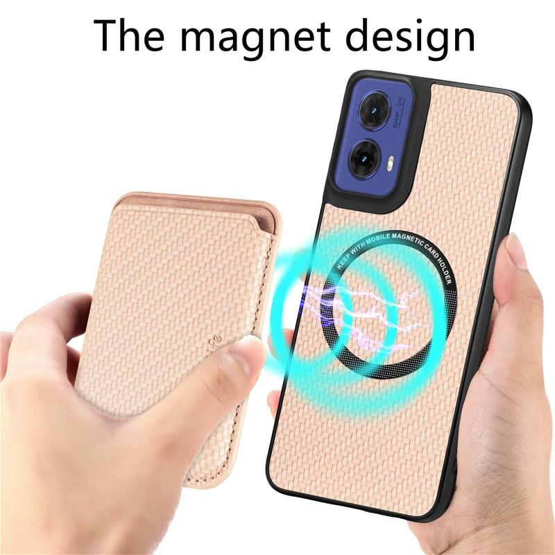For Motorola Moto G85 Carbon Fiber Leather Card MagSafe Phone Case(Khaki)