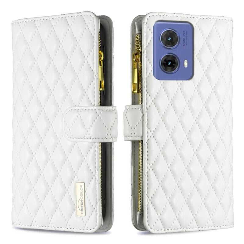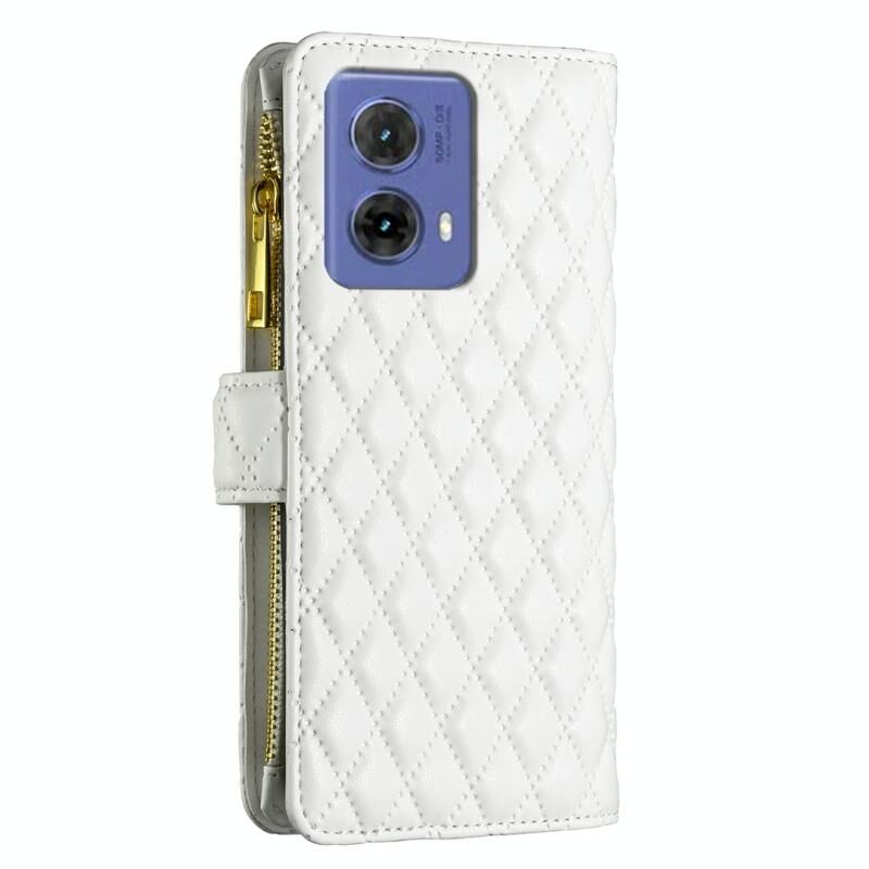 Για Motorola Moto G85 Diamond Lattice φερμουάρ πορτοφόλι δέρμα Flip υπόθεση τηλεφώνου (λευκό)