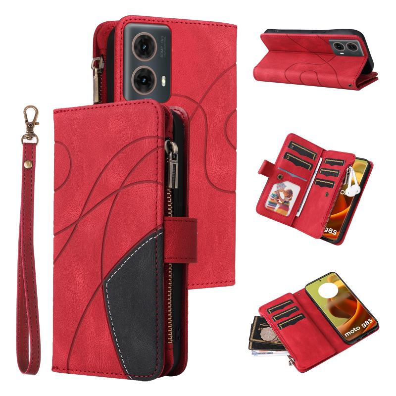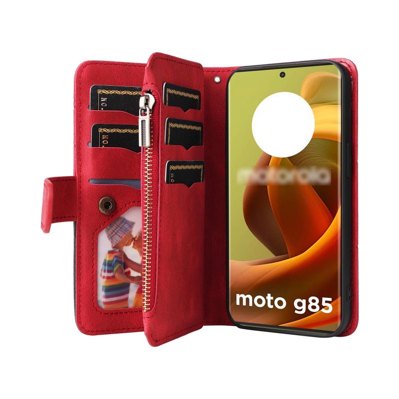 For Motorola Moto G85 Dual-color 9 Card Slots Zipper Wallet Leather Phone Case(Red)