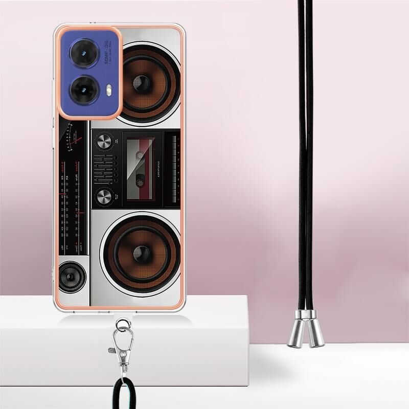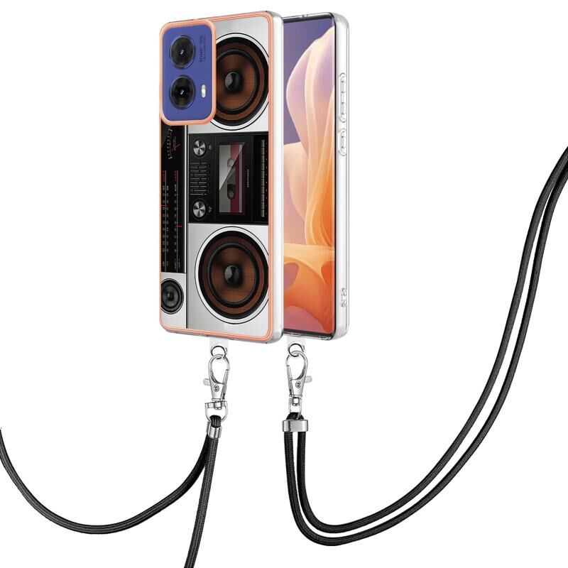 Θήκη τηλεφώνου με κορδόνι για Motorola Moto G85, επιμετάλλωση, διπλής όψης IMD (Ρετρό Ραδιόφωνο)