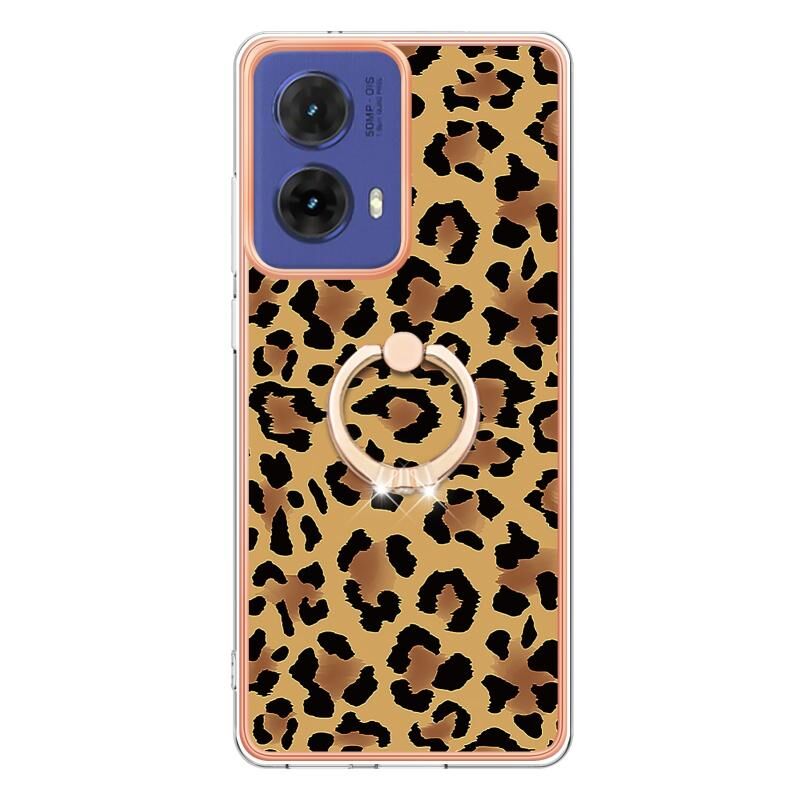 Θήκη τηλεφώνου με δακτύλιο στήριξης για Motorola Moto G85, με ηλεκτρολυτική επιμετάλλωση και διπλής όψης IMD (εκτύπωση εντός καλουπιού) (εκτύπωση λεοπάρδαλης).